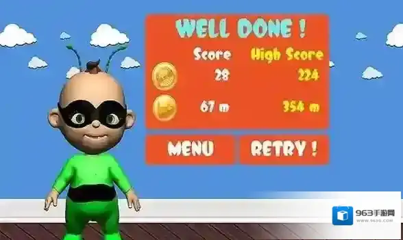 婴儿英雄3d是一款以婴儿为主角的跑酷类闯关作品,玩家将操控婴儿角色在多样的关卡中不断向前冲,途中需灵活躲避各类障碍物,确保角色能顺利抵达终点,从简单的平地赛道到复杂的障碍迷宫,难度逐步提升,操作简单易上手,无论是新手还是资深玩家都能快速融入,在奔跑与躲避中感受速度与激情,体验从起点到终点的畅快,享受闯关成功的喜悦。