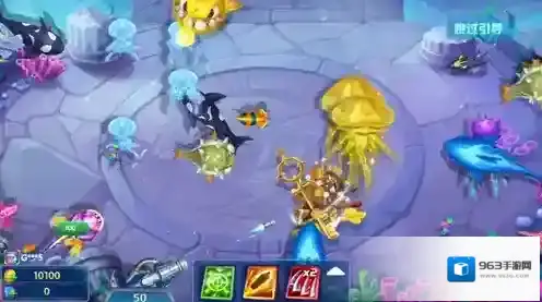 2、特殊炮弹系统策略性十足,冰冻弹可冻结范围内所有目标,溅射弹造成连锁伤害,追踪弹自动锁定高价值鱼类。技能冷却时间合理,需要玩家把握最佳使用时机,在BOSS战中尤为关键。