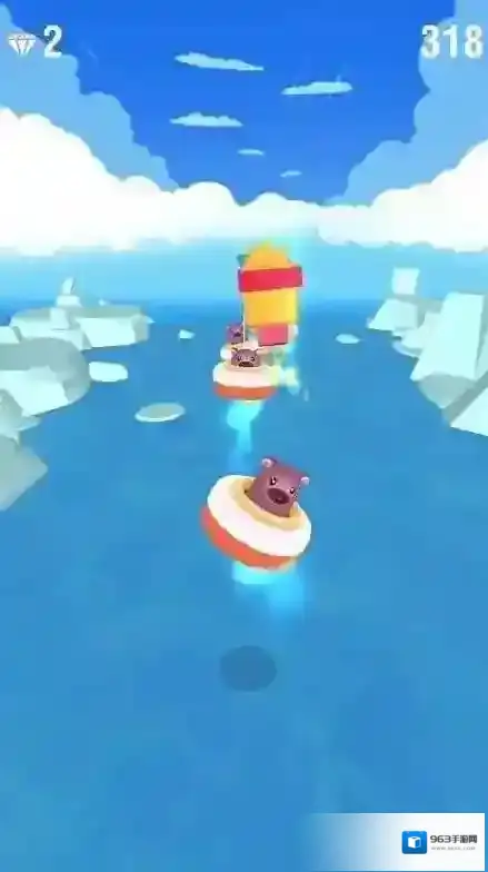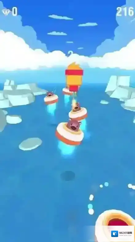 2、闯关时,持续左右滑动操控,避开冰块障碍,收集蓝色宝石,保持堆叠稳定,推进关卡进程。
