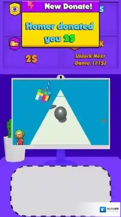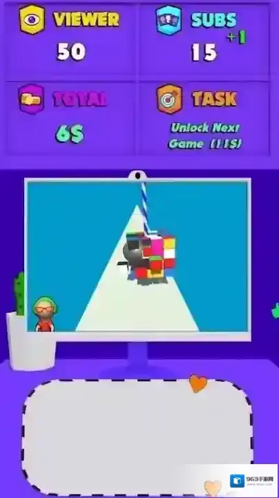 3、第三关,成功让小球通过箭头指向的平台,吸引观众(VIEWER变为24),完成关卡,解锁新任务。