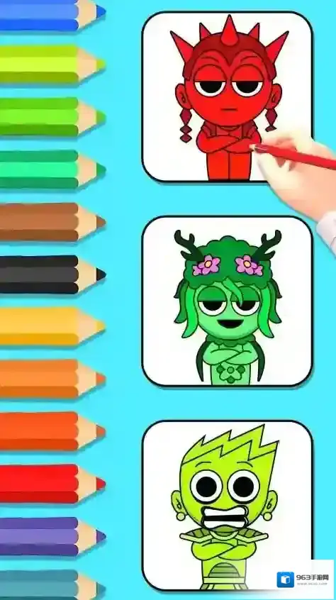 3、通过底部调色笔选取对应的颜色,在图案区域内完成填色,体验涂鸦的乐趣。