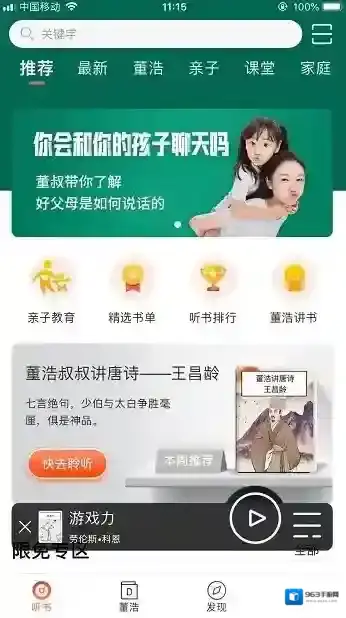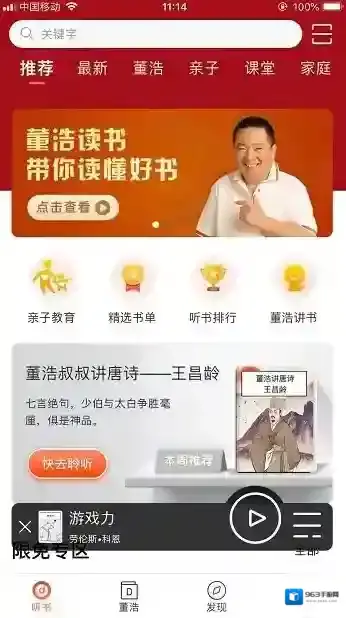 董浩读书APP致力于提供便捷、个性化的阅读体验,特别适合现代快节奏生活中追求知识与文化的用户。其丰富的书籍资源和音频解读功能,将传统阅读与现代生活完美结合。随着数字浪潮的发展,董浩读书APP无疑为书迷们打开了一个全新的阅读世界,让我们能够更好地吸取知识,更新自身的认知视野。在推陈出新的文艺作品中,读者将能获得更多灵感与思考,彷如一次次心灵的旅行。