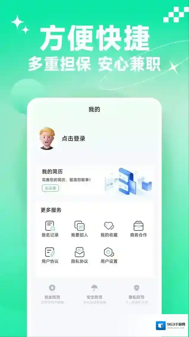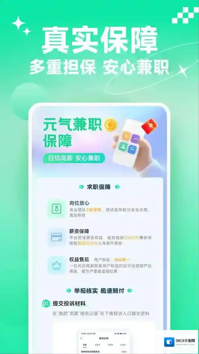 3、提供完善的保障服务,可以保证用户做兼职时的收入和利益,让用户放心做兼职。
