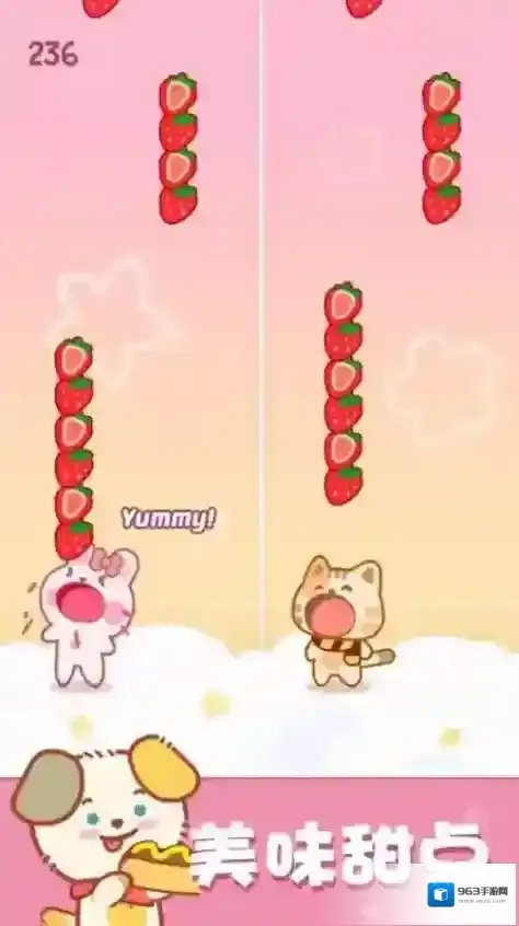 2、甜品收集系统设计精巧,包含马卡龙、提拉米苏等30多种精致甜点,需要跟随音乐节奏准确点击,让萌宠接住对应的甜品。