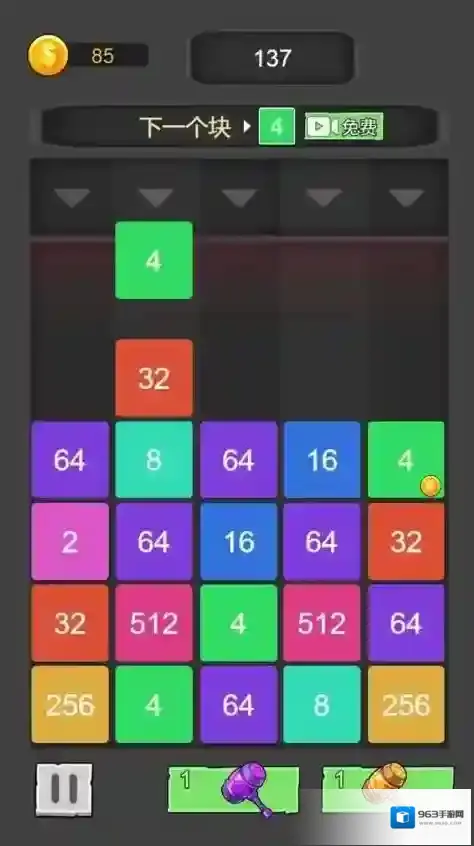 1、2048合成模式,控制数字方块的下落位置,将相同数字的方块合并,逐步合成更大的数字,挑战最高分纪录。