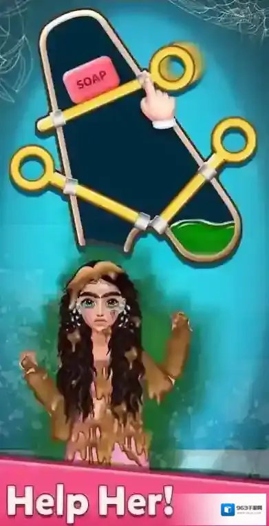3、选择箭头指向的粉色发膜,均匀包裹在头发上,等待发膜发挥作用,完成护发步骤,随后进行定型处理,打造出精致、理想的发型,完成美发改装挑战。