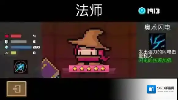 技能1:奥术闪电:发出强力的闪电眩晕被击中的敌人。满级后闪电伤害增加。
