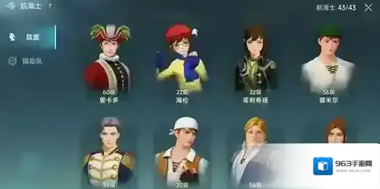 本作游戏中有43个可以获取的航海士,每个航海士都有不同的属性偏向,有不同的技能,辅助玩家更好的在游戏中冒险。
