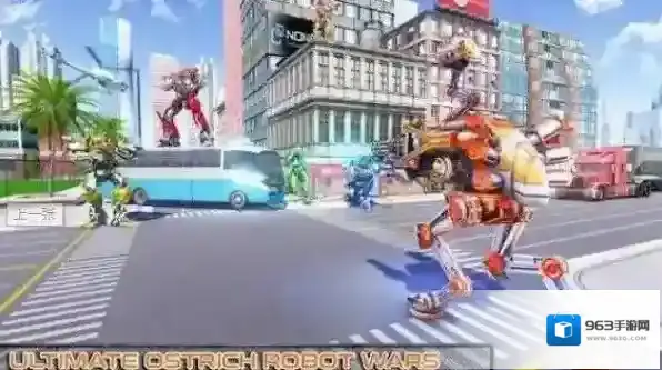 3、关卡选择页,点击1号关卡(唯一解锁),操控机甲/汽车,在城市环境中,完成战斗挑战,推进游戏。