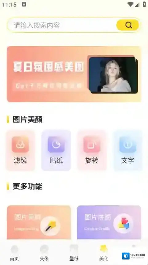 2、进入到首页之后可以看到壁纸、头像以及美化板块。