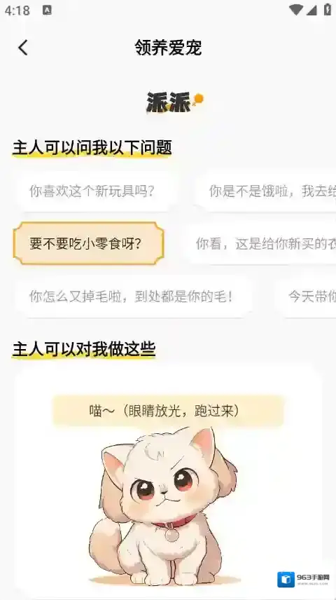 2、沉浸式虚拟养宠,通过丰富互动与档案定制,打造专属且有温度的线上宠物陪伴体验。