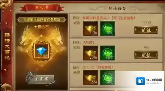 完成完整篇章后,还能领取绑钻、生肖、锋芒装备等丰厚奖励。