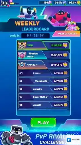 2、战斗开始后,我们将会和其他机器人进行1v1的对战,对手发动攻击的时候,点击相反方向即可闪避。