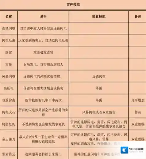 雷神的技能以雷系攻击为主,并拥有多种被动效果。