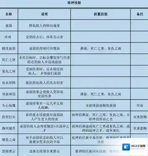 雨神技能是针对虚弱敌方或抵抗伤害而设计的。