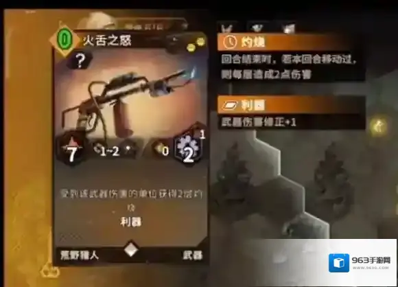 攻击:7。射程:1~2。范围:单格。耐久:2。冷却时间:1回合。有特殊效果。