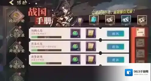 完成战国任务,即可赢取玉币、招募令、经验战策等丰厚奖励,更有金色品质的螳螂捕蝉战策,提供超高暴击率加成。