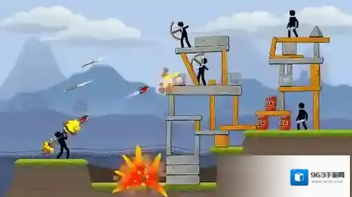 2、松手后即可将炮弹发射,击中塔楼或者敌人即可爆炸。