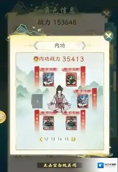 3、进行功法参悟,即升星,快捷参悟的方法为点击左上角头像下方的变强武学提升武学升重。