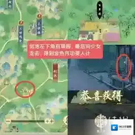 3、剑池左下角百草园,最后走向少女,可获得金色内功美人计。